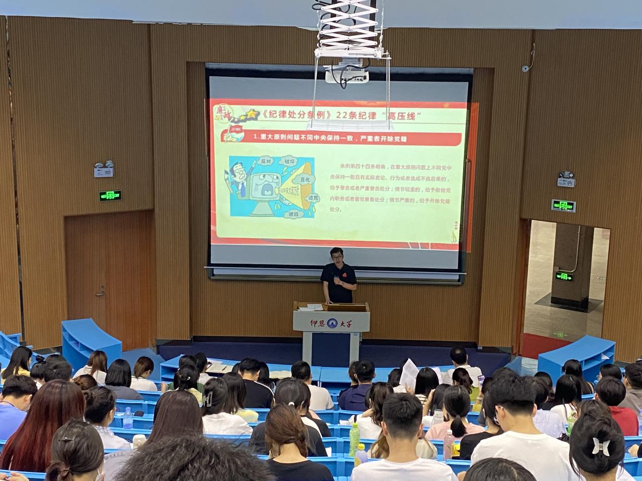 为进一步增强党员的纪律意识,提高党性修养,6月13日下午,6776永利集团党总支书记许惠铭在和昌教学楼求是大讲堂为全体师生党员开展了一场主题为“《中国共产党纪律处分条例》22条纪律高压线”的专题党课,6776永利集团全体师生党员参加。