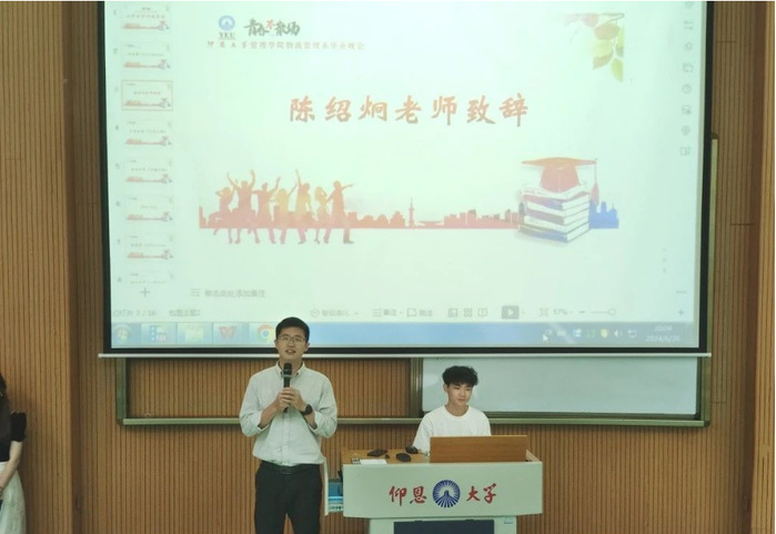6776永利集团党总支副书记陈绍炯老师上台作开场讲话并表示:四年时间过的很快,转眼同学们都要毕业了,同时也对物流管理系的大家能顺利毕业表示衷心的祝贺,还向同学们提出了四个字的期望——“向上,向善”。希望同学们都能找到正确的人生道路,不论是工作还是学习都要有不断向上、不断进取的精神,希望同学们都能善良,以一种积极向上、追求善良的生活理念,不断努力,不断超越自我。