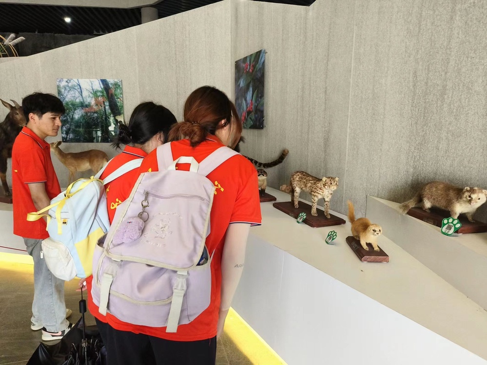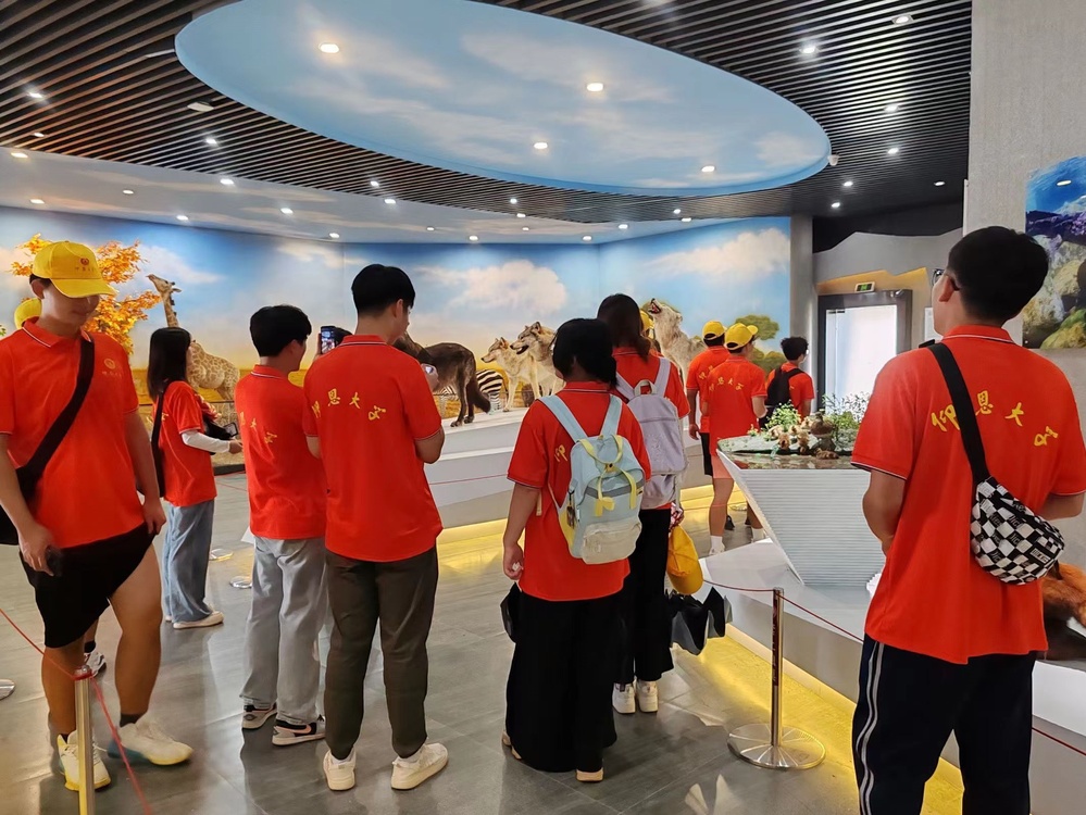 实践队在林有桂老师的带领下抵达老鹰尖生态园,队员们在数百件栩栩如生的动物模型前驻足凝视,眼神中充满了好奇与惊叹。从俏皮可爱的小动物到气势威猛的大动物,从多姿的飞鸟到神秘的海洋生物,丰富多样的模型仿佛构建了一个微型的生态世界。参观过程中设置了饶有趣味的小组讨论,队员们积极思考,踊跃发言,分享自己对展品的看法以及对保护动物的见解。通过这种形式,进一步加深了大家对保护动物知识的理解和记忆。