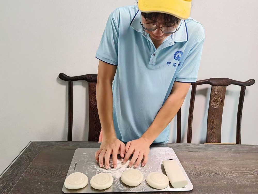 随后,实践队员们怀着对传统文化的敬仰和探索之心,来到了当地学习传统手艺——制作红团。红团,作为莆田地区极具特色的传统美食,不仅味道鲜美,更承载着深厚的文化内涵和历史记忆。从揉面、擀皮、包馅到印模,每一个环节都需要耐心和技巧。队员们起初略显生疏,但在慢慢学习下,逐渐掌握了要领,制作出了一个个形态各异的红团。
