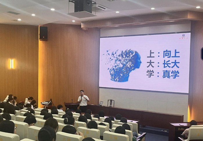 陈绍炯老师作为此次的主讲人,分享了他给2024级物流管理新生的寄语:向上,向善。第一个是“向上”,抬头。争取自己想要的东西,要踮起脚尖,要抬起头去看,去够,争取我们想要的东西。第二个是“向善”,这是从校训“学会做人”,“学会做事”两个方面来谈的。希望物流新生们在学校学习的过程当中,能够去关心身边的同学、老师。