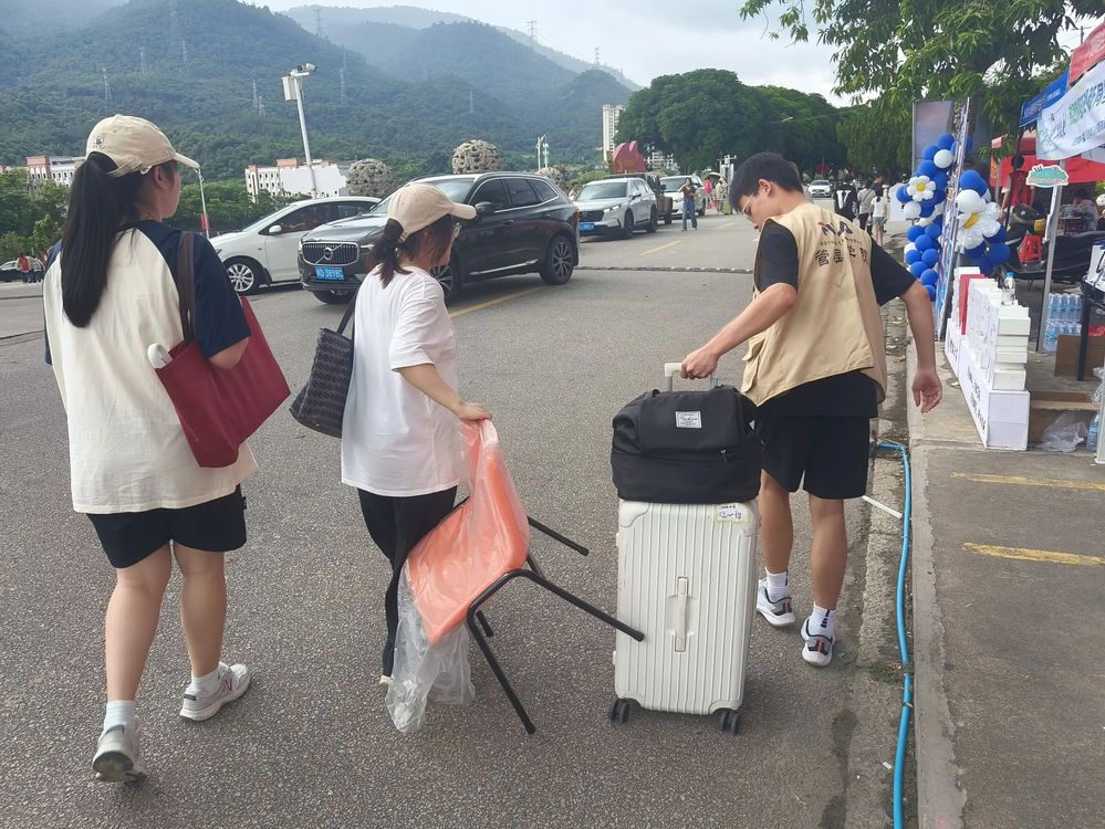 志愿者帮助新生拿行李