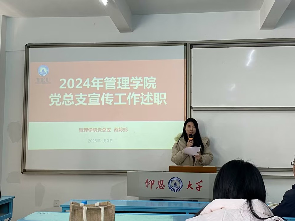 会上,每位辅导员依次进行述职汇报,从思想政治教育、品德修养引领、专业能力提升、学生工作创新、日常工作、学生培养成效等多维度、全方位地展示过去一年的工作情况,他们通过丰富的数据与生动的案例,展现出在学生管理、思想引导、心理辅导、学业帮扶等工作中的点滴努力与显著成效,同时,也对工作中的不足进行深刻反思,并提出未来的改进计划与工作展望。