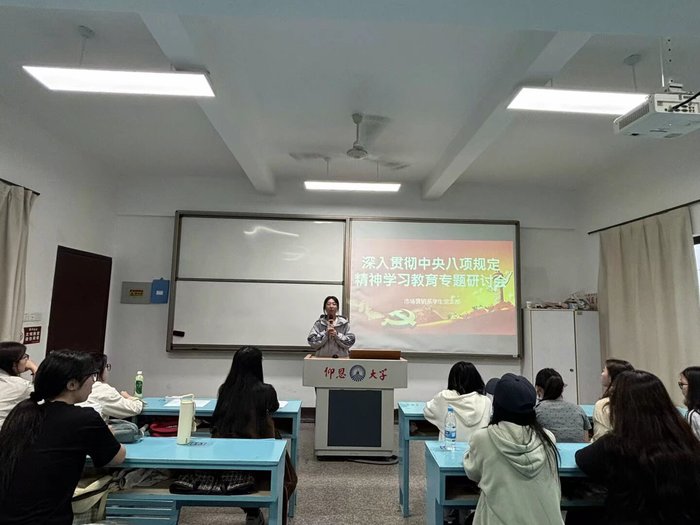4月9日,市场营销系学生党支部于共和楼206开展深入贯彻中央八项规定精神专题学习研讨会。