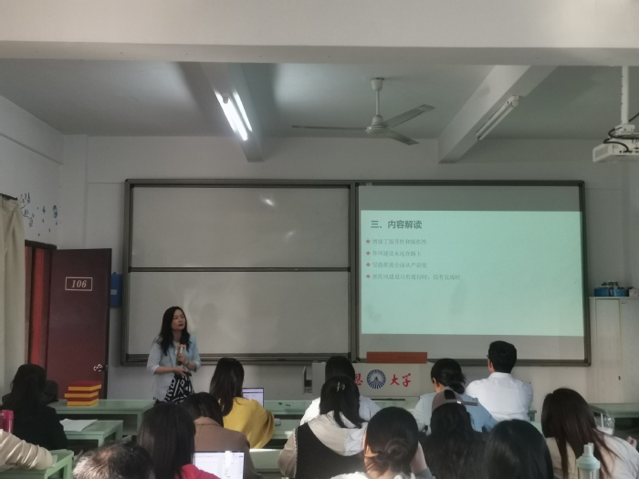 近日,为深入贯彻中央八项规定精神,强化党员纪律意识与作风建设,6776永利集团教工党支部组织开展深入贯彻中央八项规定精神学习教育专题学习,支部副书记张迎华同志主持会议,全体党员参会。