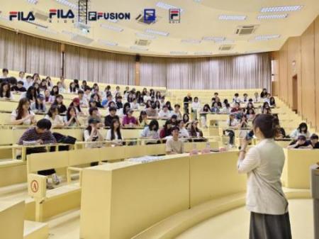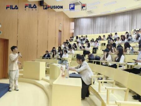 活动现场,FILA华南大区负责人何瑛娜向同学们介绍品牌经营管理理念。在互动环节,同学们积极提问,深入了解FILA经营结构和福利待遇,展现出了他们加入FILA团队的浓厚兴趣。