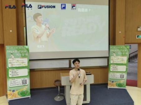 活动第二个环节,FILA往届优秀学长范文飞分享经验。他曾以暑期实践生身份加入FILA,现为FILA门店店长。他用亲身经历讲述在FILA的成长故事,鼓励学弟学妹把握机会,参加FILA暑期实践,锻炼自我,开启职业新篇。