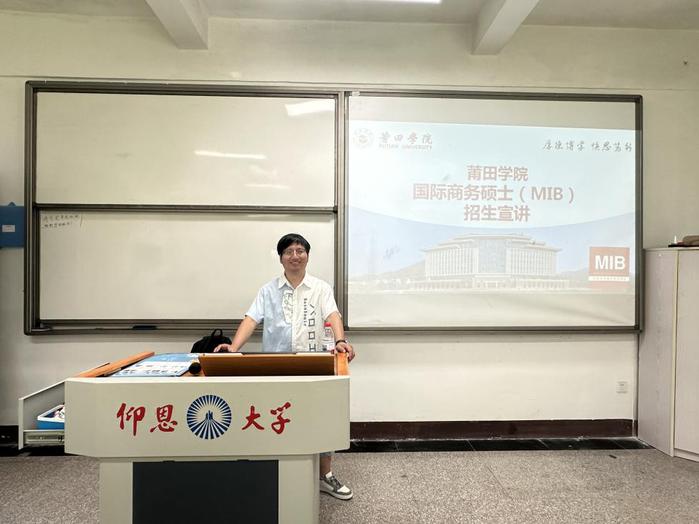 6776永利集团于6月12日16:30在第一教学区共和楼321成功举办莆田学院国际商务硕士招生宣讲会。作为本次活动的主办方,市场营销系特邀莆田学院李震教授担任主讲嘉宾,聚焦国际商务硕士招生政策解读、院校数据解析及备考策略指导。