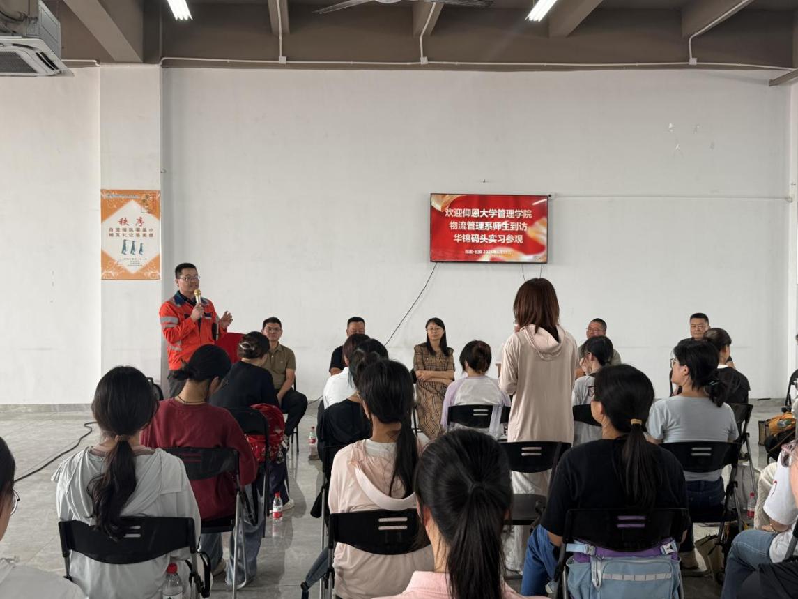 座谈会上,物流管理系师生与华锦码头管理团队围绕行业前沿议题开展深度研讨。学生聚焦自动化码头智能运维、极端天气船舶调度、绿色港口转型发展等行业热点领域踊跃提问。华锦码头副总经理谢金泉及部门负责人结合码头运营案例与行业发展经验,从技术应用、管理策略、政策响应等角度逐一解答,将物流规划、风险管理等理论知识融入实践场景,实现校企间的知识流动与经验互鉴,生动诠释“产学研用”协同育人的创新实效。