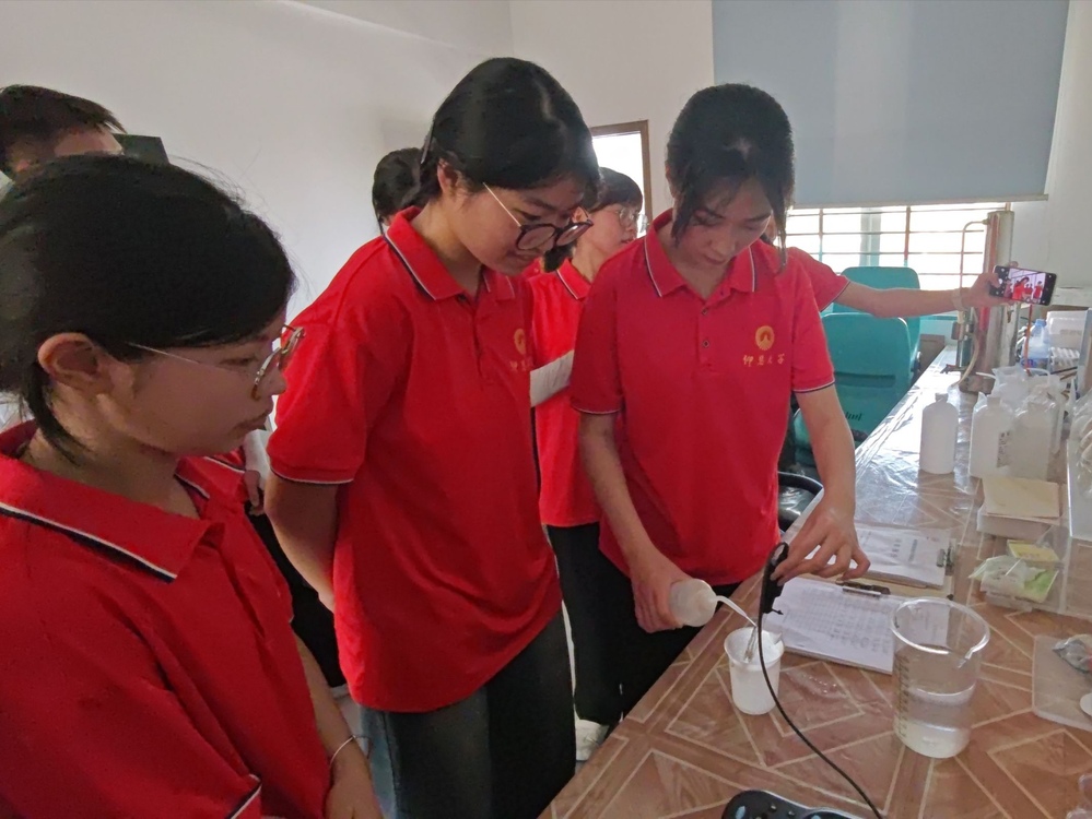面对传统文化传播受限,当代年轻人对惠女精神认知匮乏的问题,实践队深入惠女水库纪念馆,实地学习惠女精神,探索人水和谐的可持续发展之路。活动中,通过参观惠女水库纪念馆中的历史图画、实物展陈及先辈所捐献的奖章,实践队员深刻感受到惠女精神的时代价值。随后,实践队员在水库技术人员指导下开展水质采样与检测,对水库的pH值、溶解氧等指标进行测定分析,切身感受到生态文明建设的时代使命。