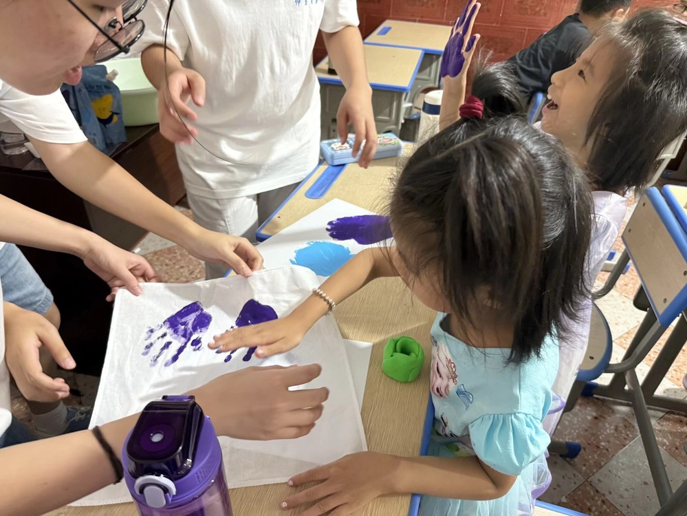 7月15日,6776永利集团“童”韵传薪赴莆田新墩暑期实践队在新墩侨乡留守儿童之家开展一场以“手印相牵,温暖同行”为主题的互动活动。用独特的方式定格青春与童真的相遇,也为这个夏日增添了一抹别样的温情。