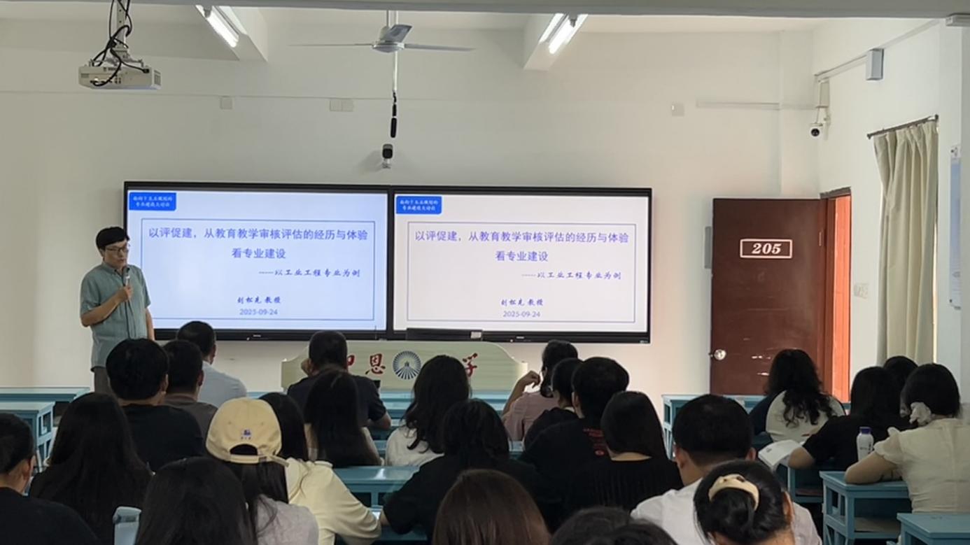 针对评估重点关注的 “校内自评自建机制”,刘松先教授展开系统阐释。他结合工业工程专业的评估实践,详细回顾了评估过程中的关键环节与深刻体验,指出自评自建是专业持续优化的内生动力。同时,他对照评估指标体系,逐条解析了专业建设在人才培养定位、课程体系构建、实践教学开展等方面的具体要求,为各专业对标整改提供了清晰指引。