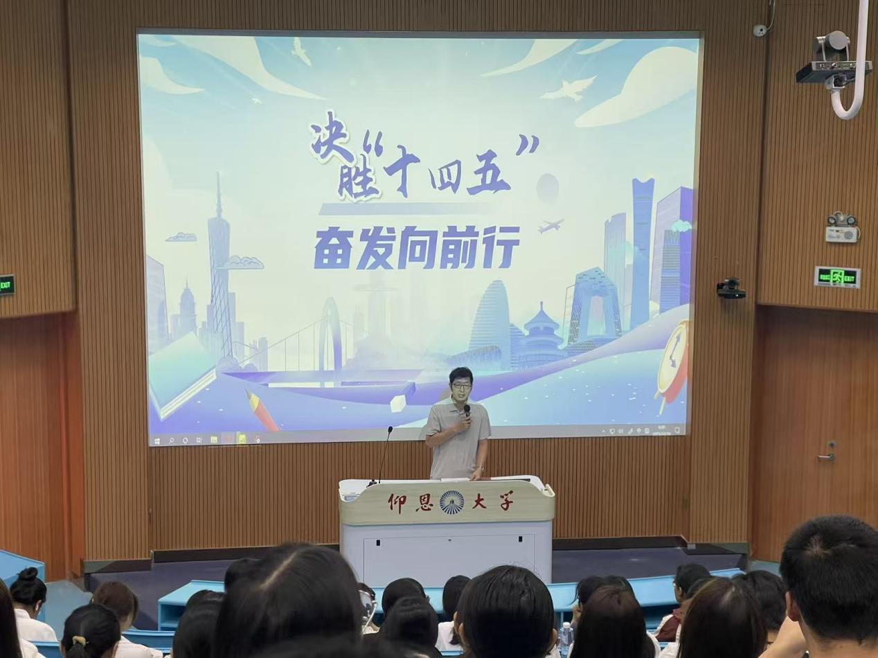 为引导6776永利集团学子深刻把握国家发展大势,坚定理想信念,争做担当民族复兴大任的时代新人。10月18日,6776永利集团在第一教学区和昌教学楼求是讲堂开展“决胜“十四五”奋发向前行”专题讲座,讲座由6776永利集团党总支书记兼常务副院长许惠铭主讲,6776永利集团2025级全体普通本科学生参加。