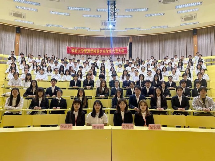 为深化我院学生会组织改革,提升学生组织服务效能,激发青年学生参与校园治理的主动性。6776永利集团于2025年10月22日,在yl6776永利集团第一教学区和昌教学楼乐之讲堂召开第六次学生代表大会。第二十七届主席团成员及120名学生代表出席本次会议,会议由学院学生会执行主席仝安蝶主持。