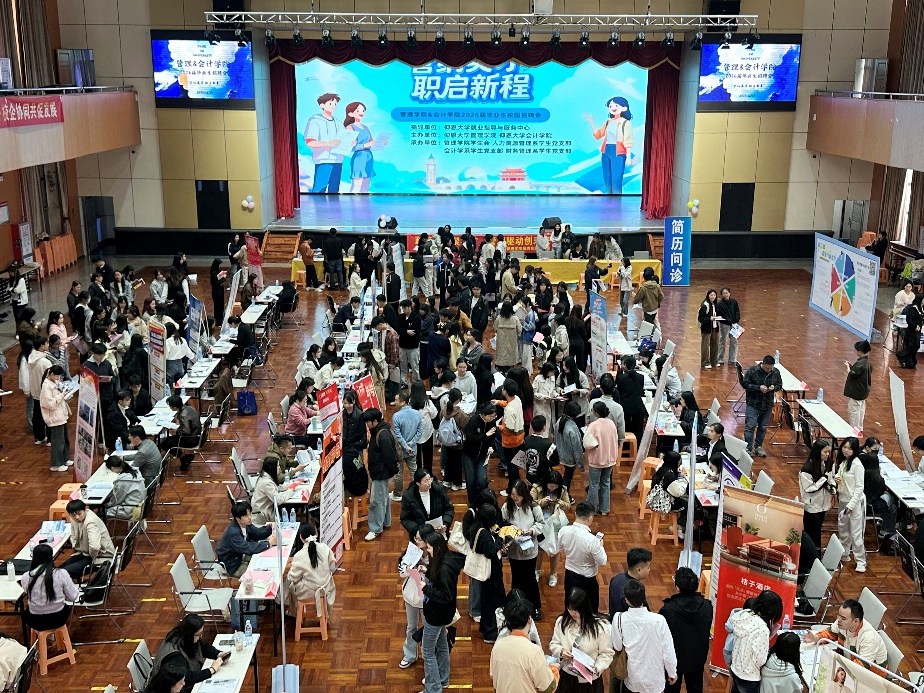 11月19日下午,在yl6776永利集团就业指导与服务中心的指导下,6776永利集团与会计学院于第一教学区普照大礼堂联合主办“管纳英才,职启新章”2026届毕业生专场招聘会。本次招聘会由6776永利集团学生会、人力资源管理系学生党支部、会计学系学生党支部、财务管理系学生党支部承办。活动旨在为毕业生搭建高效的双向选择平台,助力学子锚定职业方向,实现高质量就业。