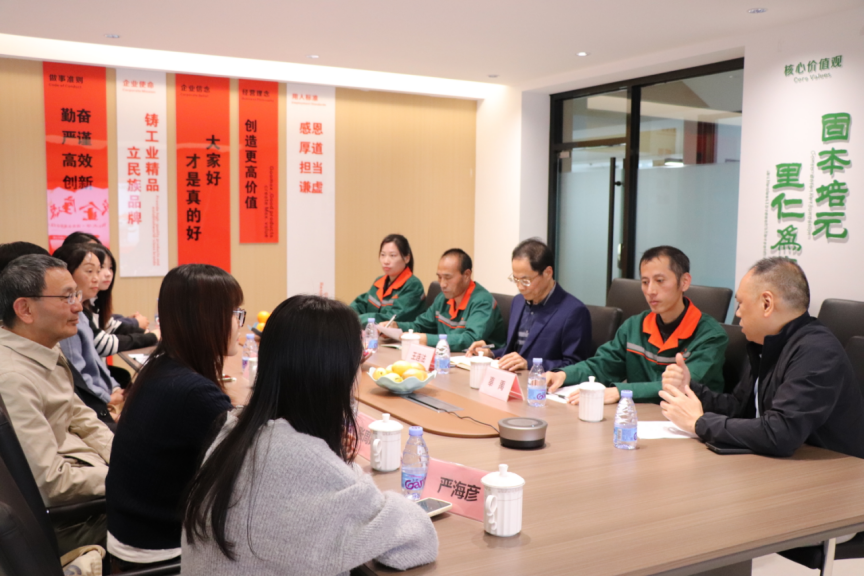 参观环节结束后,一场以“求职对接与校企共育”为主题的座谈会随即举行。座谈会气氛热烈,针对性极强。固美金属的人力资源部门负责人、各生产与技术部门主管与我院应届毕业生及带队老师进行了深入的交流。
