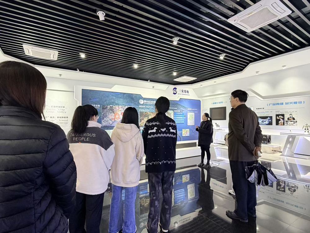 活动伊始,三安企业负责人向师生详细介绍了公司发展历程及产业布局。作为全球领先的半导体光电器件龙头企业,三安光电在LED外延芯片、射频器件、Mini/Micro LED等领域取得突破性成果,其智能化生产体系与工业工程专业高度契合。随后,师生们深入车间,实地观摩自动化生产线运作流程,生产线负责人详细介绍了工作内容和生产过程,让师生直观感受技术转化成果。