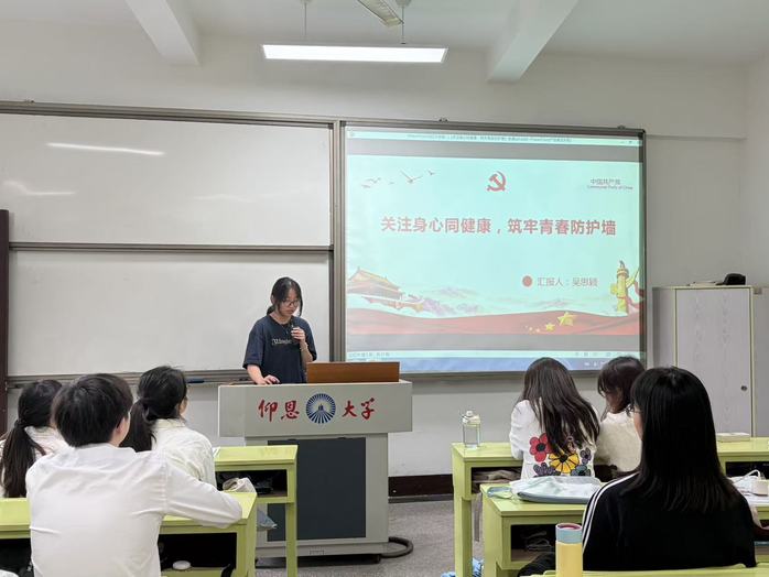 本次党课紧密结合新时代青年成长特点与学生党员教育要求,围绕思想引领、身心健康、安全防范、使命担当等核心内容展开,主题鲜明、重点突出、贴近学生实际,为全体党员带来一堂兼具思想深度与实践指导意义的专题教育课。党课上,吴思颖同志依次从明辨时代大势、筑牢思想防线、关注身心调适、抵御风险侵蚀、践行青年担当五个方面进行系统讲解。她结合健康中国战略与青年发展规划,深入分析当前大学生在学业、就业、网络环境下面临的身心压力与思想困惑,引导大家加强理论学习、坚定理想信念、学会情绪调节、养成健康生活习惯,同时提高网络安全与纪律规矩意识,自觉抵制不良思潮与各类风险诱惑。最后,吴思颖同志作总结发言,勉励全体学生党员以此次党课为新起点,坚持身心同健康、知行相统一,自觉发挥先锋模范作用,以强健的体魄、健康的心态、坚定的信念投入学习与生活,不负时代、不负韶华,在新时代新征程中展现青年党员的担当与风采。